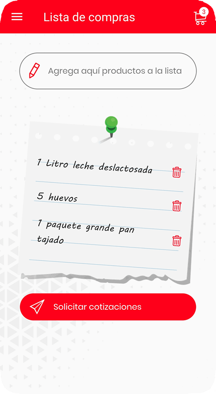 Tu lista de productos. Funciona de la misma forma en que lo dirías personalmente al tendero.